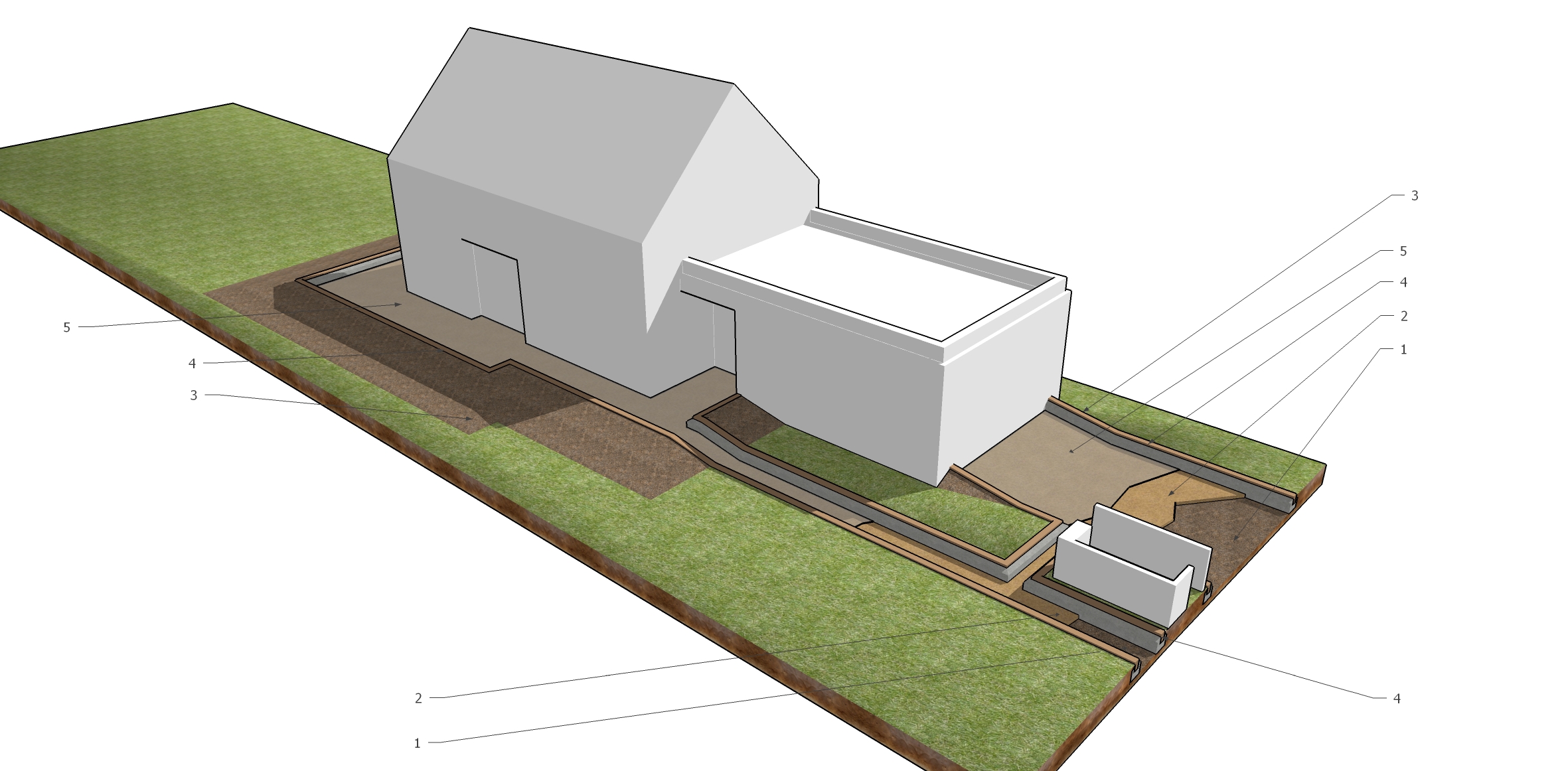 3. Podjazd do garażu. Tu konieczny do określenia jest również spadek terenu, czyli różnica wysokości na początku podjazdu i przy bramie garażowej.